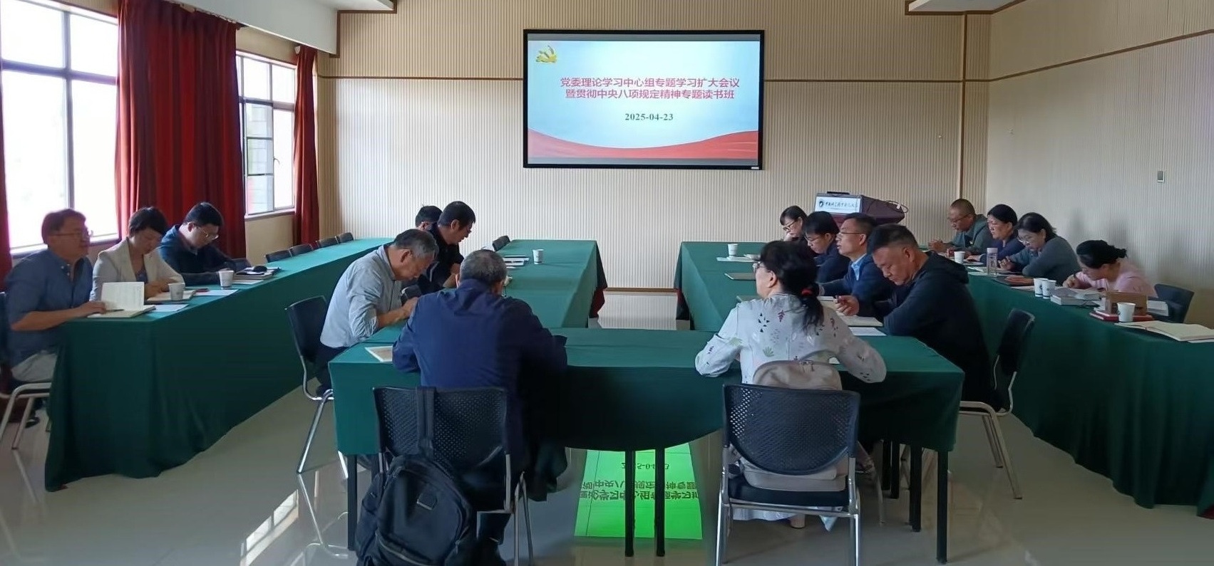 4月23日,中国科学院云南天文台召开党委理论学习中心组专题学习扩大会议暨深入贯彻中央八项规定精神专题读书班。台领导、党委委员、纪委委员、台务委员、各在职党支部书记和职能部门负责人等20余人参加了会议,党委书记、台长陈雪飞主持会议。