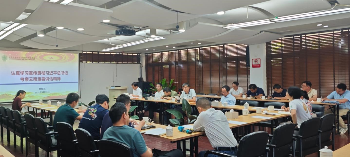 4月28日下午,中国科学院西双版纳热带植物园(以下简称“版纳植物园”)召开党委理论学习中心组学习扩大会,深入学习领会习近平生态文明思想、习近平总书记考察云南重要讲话精神,结合单位实际,研讨贯彻落实思路、举措。园党委书记甘烦远主持会议。