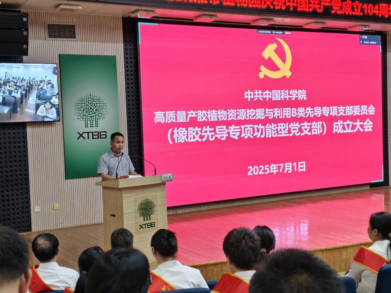 7月1日,在庆祝中国共产党成立104周年之际,中国科学院西双版纳热带植物园(以下简称“版纳植物园”)举行橡胶先导专项功能型党支部成立大会。园党委书记甘烦远主持大会。