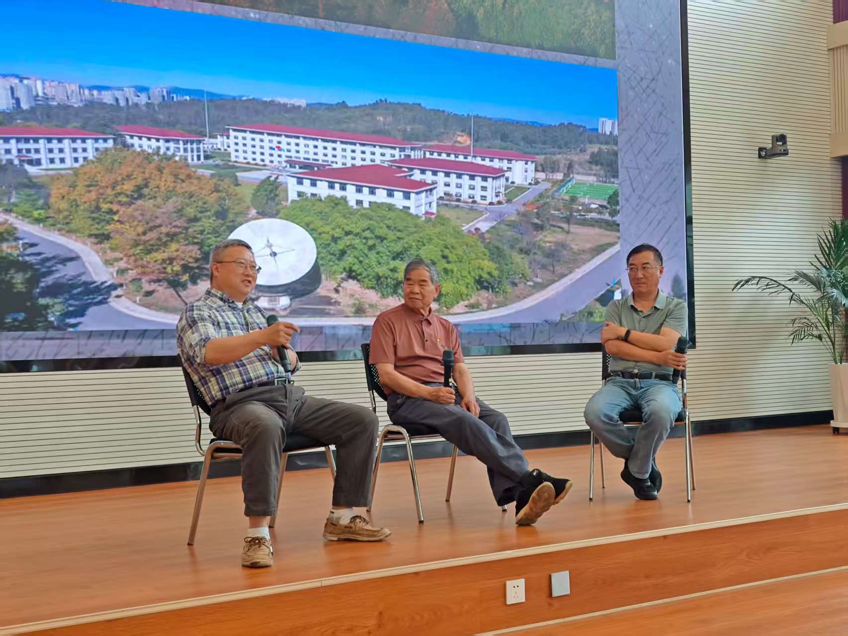 云南天文台原台长谭徽松研究员讲述了七、八十年代云南天文台在艰苦条件下的选址和基础设施建设工作,以及一米光学望远镜的建设历程,分享了许多当年的有趣故事,当年欢声笑语的劳动场面仿佛就在眼前。谈到当时是否觉得条件艰苦时,谭徽松一度哽咽,“我是学天文的,能够有机会搞天文研究,没什么比这更快乐的事了,从来没感觉到辛苦”。