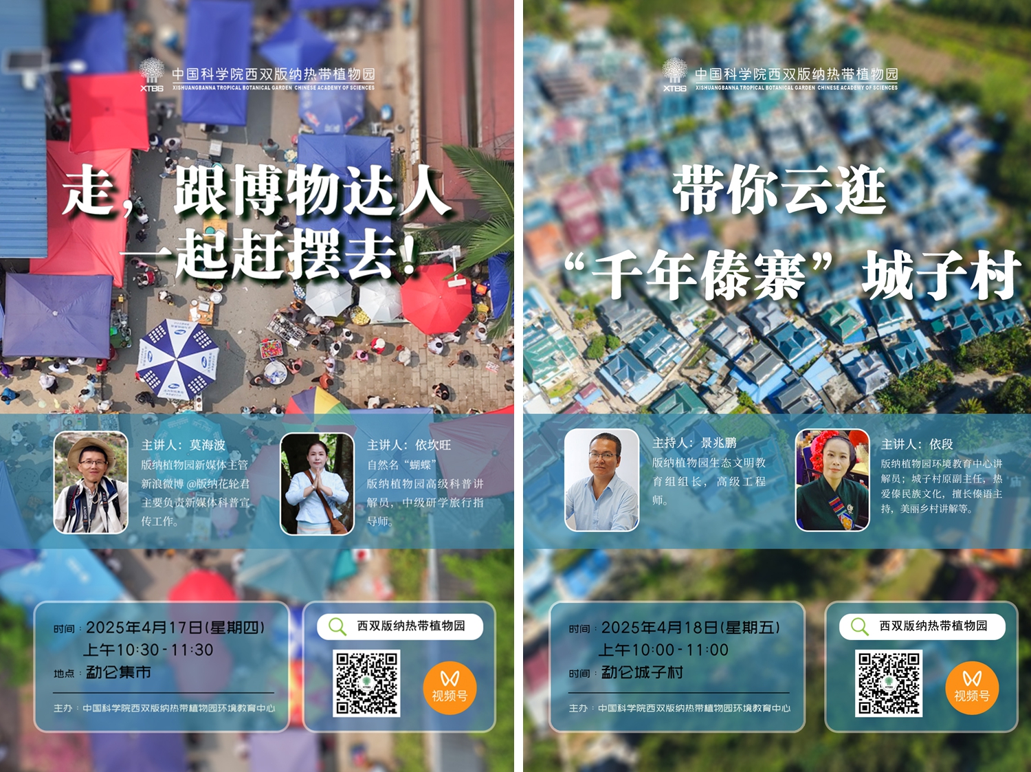 在傣历1387新年到来之际,中国科学院西双版纳热带植物园(“版纳植物园”)环境教育中心与旅游管理部组织了5场直播活动,围绕着傣族传统文化、泼水活动、兰花展、节日赶摆以及傣寨进行了直播报道,将傣族新年期间的庆祝活动、兰花展、民俗活动、美食等民族文化传达给五湖四海的线上观众。