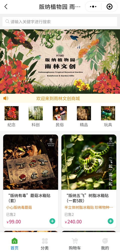 试运营期间,用户可通过微信搜索小程序“版纳植物园 雨林文创”进行浏览和选购。 一场跨越山海的雨林文化之旅,正从指尖开启。