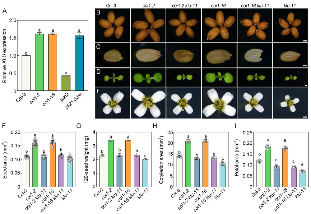 图1. KLU突变抑制coi1的种子大小表型(Zhang et al., 2025,Plant Cell)
