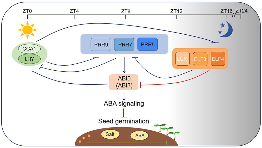 图2. 昼夜节律信号调控ABA反应及种子萌发的模型图(Tang et al., 2025,Plant Cell)。