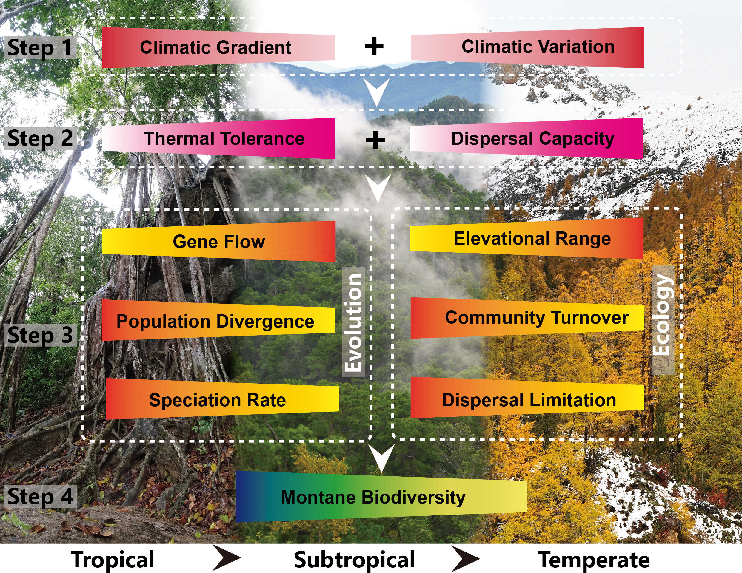 这一理论解释了热带山地物种海拔分布范围较窄、沿海拔梯度物种周转更快,进而形成更高生物多样性的现象——这些核心观点为理解生物生理适应、物种形成和物种共存奠定了基础。本研究旨在厘清其理论框架,提出严格的验证方法,并延伸其应用以应对全球变化的挑战。通过完善该理论的应用,研究人员不仅能更准确预测生物多样性对气候变化的响应,还将推动生态理论的发展。