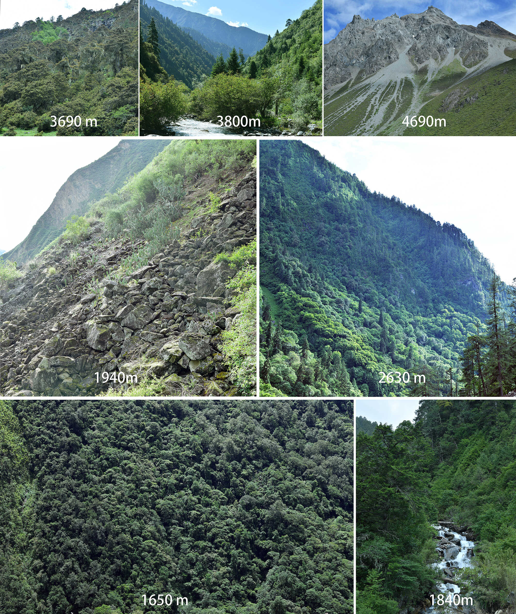 不同海拔调查区域的植被群落外貌