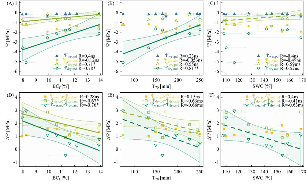 图2.泡状细胞结构、叶片保水能力和叶片储存能力对叶片水势的日间和季节变化的影响
