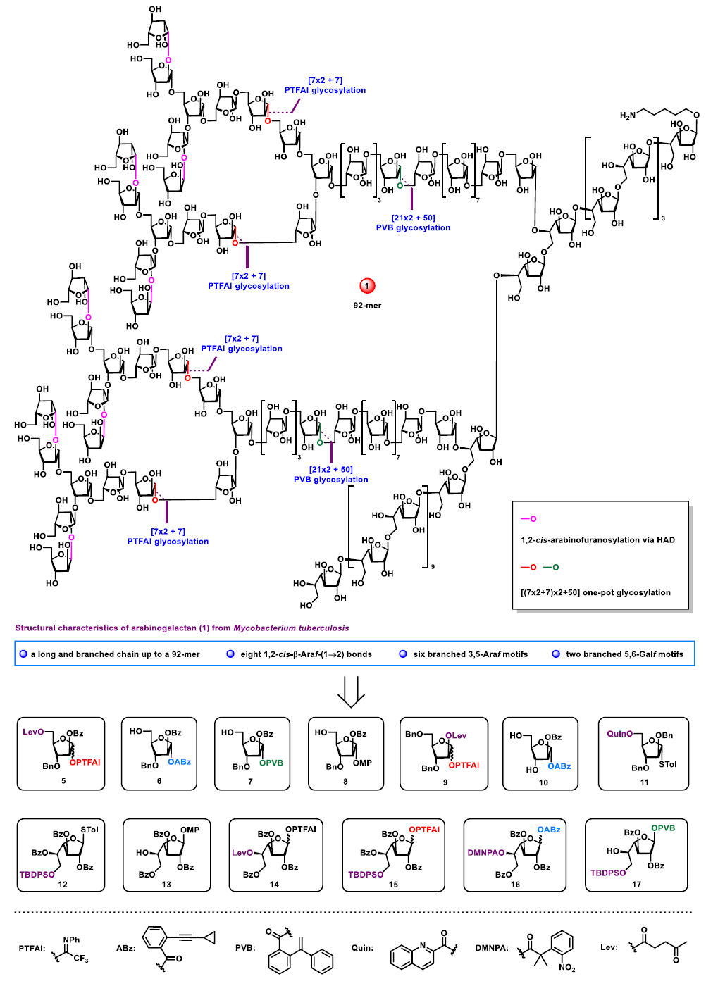 昆明植物所完成结核分枝杆菌阿拉伯半乳聚糖高达92糖的一锅法合成