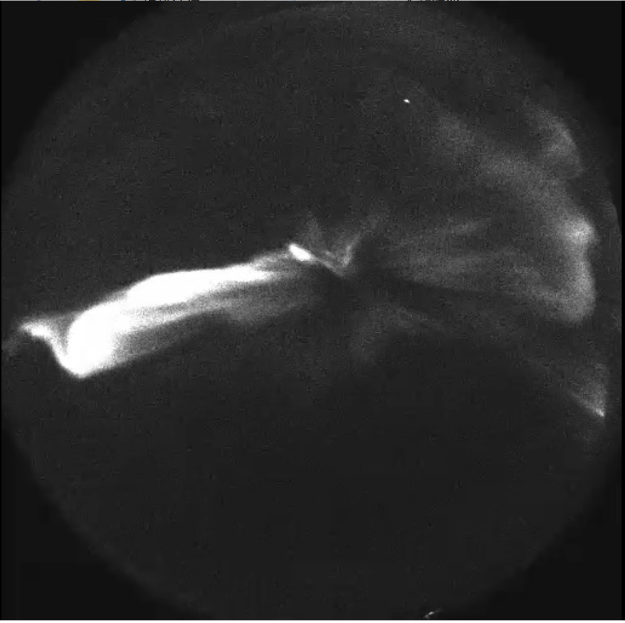 图3:丽江高美古观测站全天空窄带图像(左图)和北极朗伊尔站全天空极光高频窄带图像(右图)