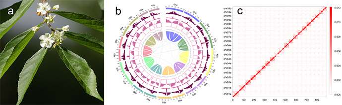 近日,中国科学院昆明植物研究所云南省极小种群野生植物综合保护重点实验室研究团队综合运用PacBio HiFi、Oxford Nanopore、Hi-C等多种测序技术,获得了无间隙的染色体级别参考基因组,并解析了其叶绿体与线粒体基因组特征。此次组装的基因组总长约890 Mb,注释到68,639个基因,完整度高达99.93%。这一高质量基因组将用于解决平当树属与其近缘属的分类争议,并为保护单元划分、迁地保护效果评估、抗旱基因挖掘及生态修复示范项目提供重要支撑,为该物种的保护遗传学、系统发育地位确立及可持续利用奠定了关键基础。同时,平当树枝条优雅、花序洁白,具备园艺开发价值,基因组资源也将推动其优良品种的选育与应用。