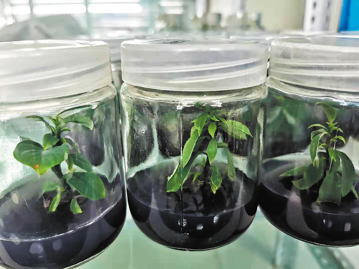 Malania oleifera plants are cultivated in jars. CHINA DAILY