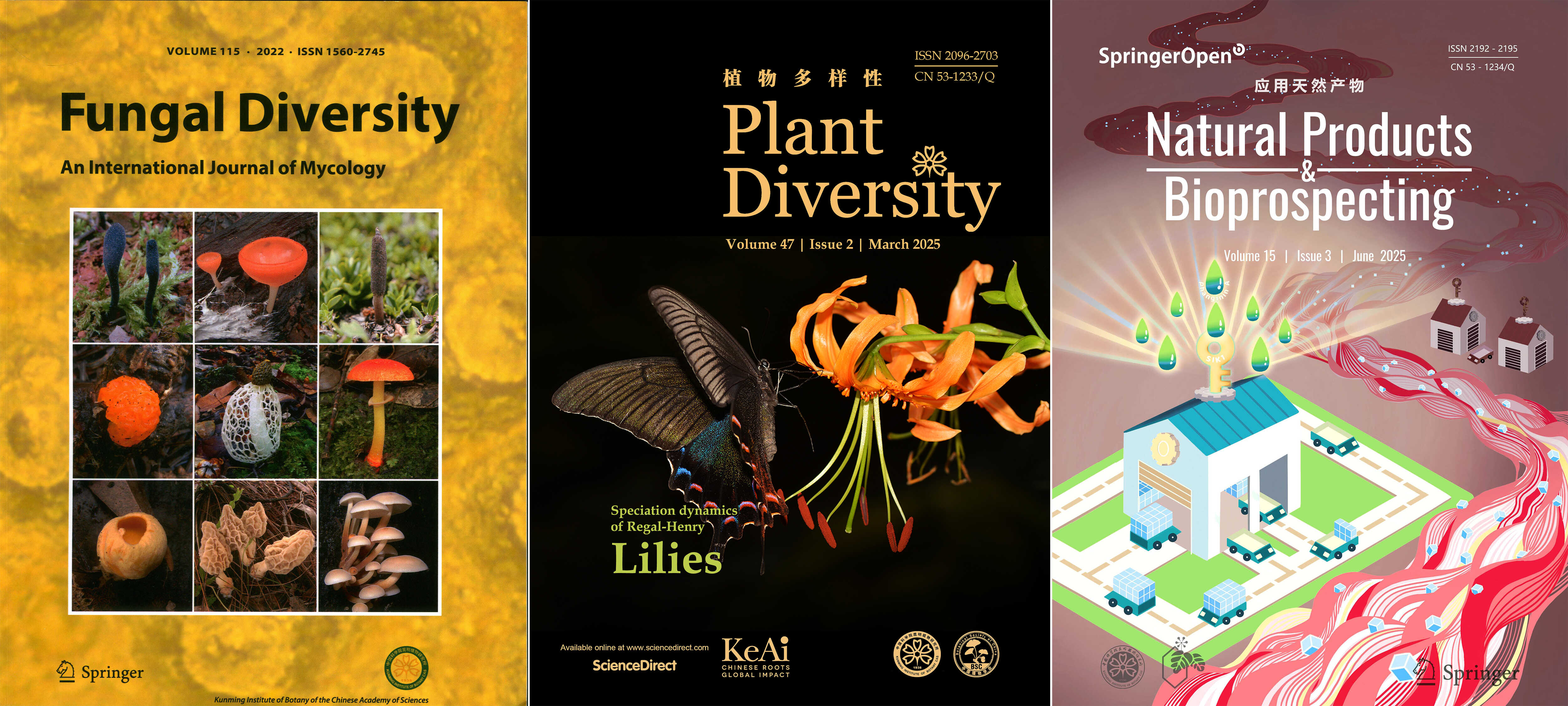 其中,《真菌多样性(英)》(Fungal Diversity, FD)最新影响因子为24.8,五年影响因子为28.3,在Web of Science核心合集收录的真菌药学(Mycology)领域的32种期刊中继续保持排名第一的佳绩;《植物多样性(英)》(Plant Diversity, PD)最新影响因子为6.3,五年影响因子为5.4,在Web of Science核心合集收录的植物科学学科(Plant Sciences) 273种期刊中排名第20位,进入Q1区(TOP7.1%);《应用天然产物(英)》(Natural Products and Bioprospecting, NPB)影响因子达4.9,五年影响因子4.8,在Web of Science核心合集收录的化学药学(Chemistry, Medicinal)领域的72种期刊中排名17,再次进入Q1区。