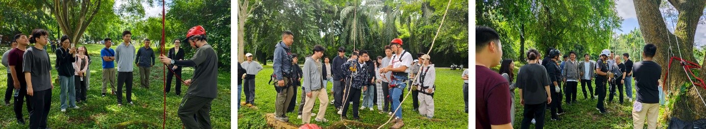 会议期间,版纳植物园组织开展了单绳攀爬与高空救援规范化操作培训,邀请到热带森林生态学实验室的Akihiro Nakamura、邓云、董金龙等专家系统演示多种攀爬技巧及救援流程。与会人员还实地考察了版纳植物园补蚌20公顷长期动态监测样地及1公顷塔吊样地,并在塔吊样地现场进行高空救援模拟演练,进一步提升了相关人员的实操能力和安全意识。