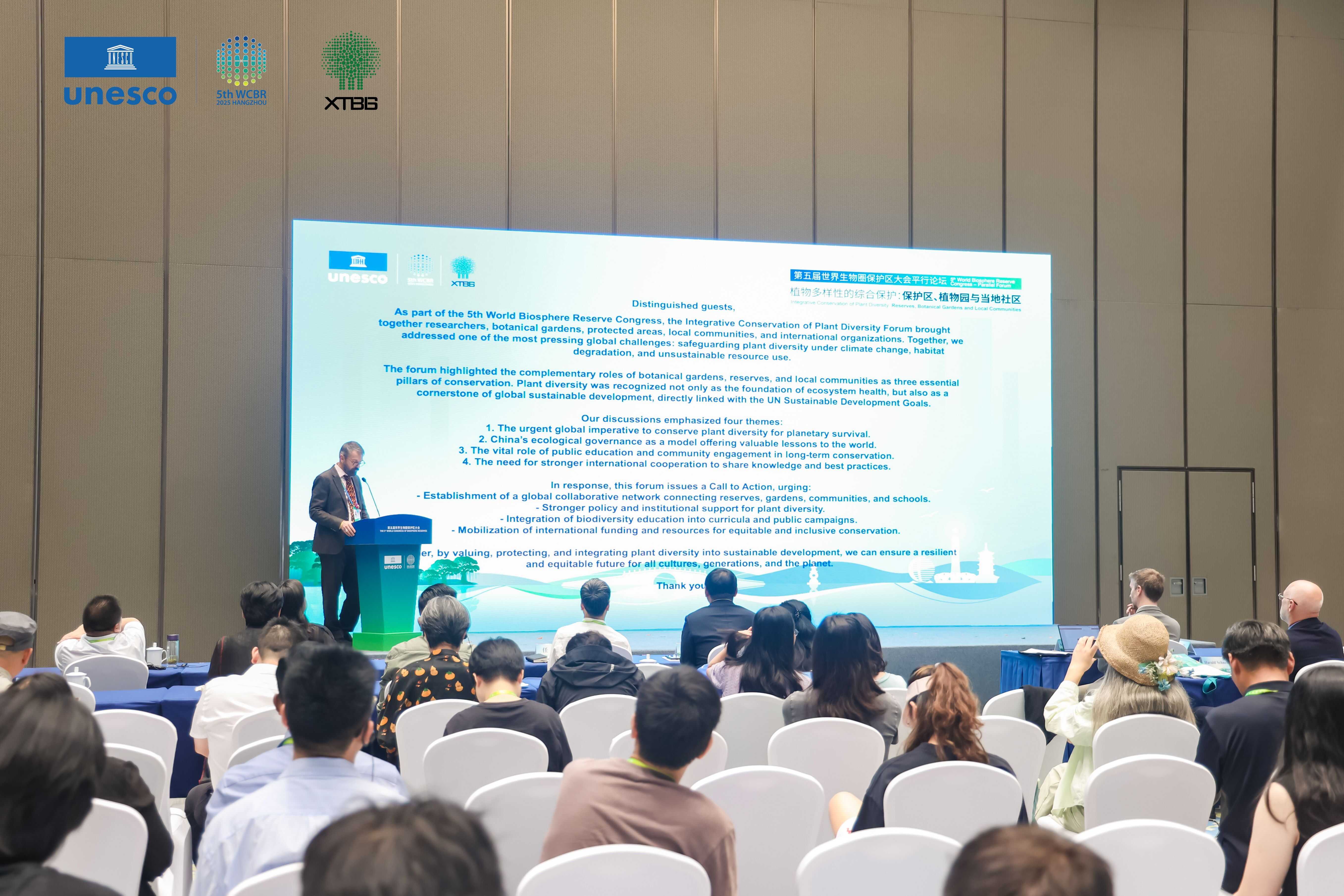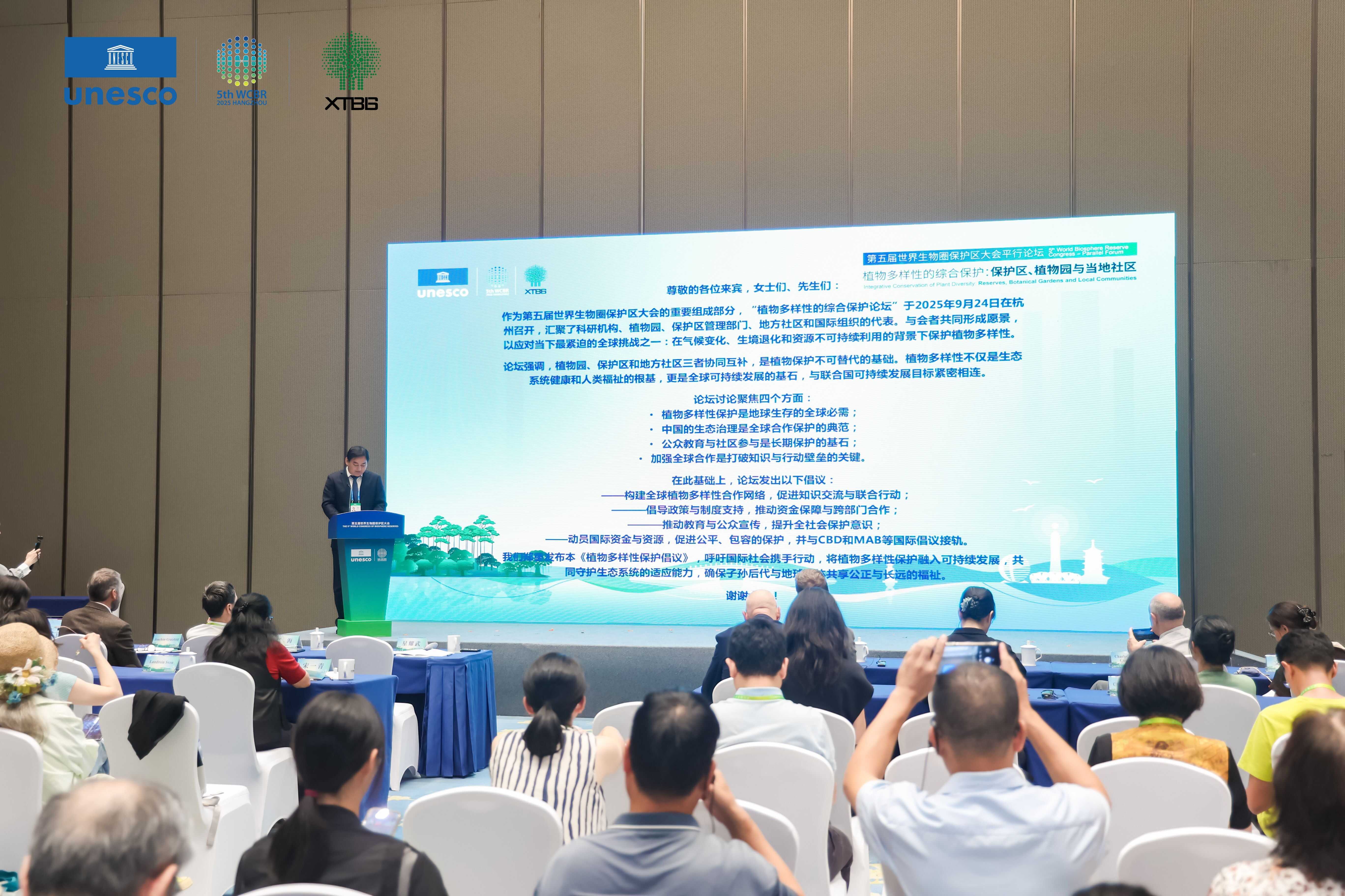联合国教科文组织“人与生物圈计划”秘书处代表Maximilien Gueze博士强调:“植物多样性是生态系统健康与人类福祉的基石。杭州的世界生物圈保护区大会提醒我们,保护地不仅是一个受保护的空间,更是一个交流创新以及充满希望的地方。植物园在就地与迁地保护相结合的独特经验,为全球保护事业提供了宝贵思路和案例。”