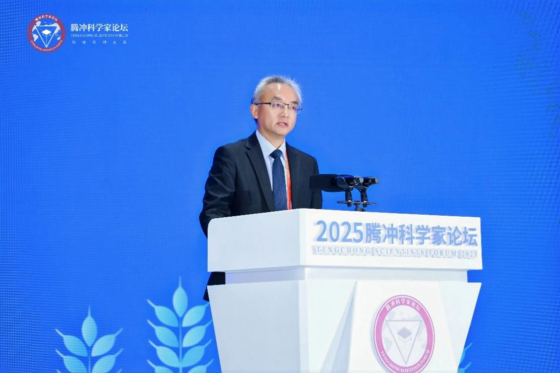 12月7日至8日,2025腾冲科学家论坛·生物多样性与现代农业论坛在腾冲市举行。本次论坛以“特色资源发掘与创新开发利用”为主题,聚焦生物多样性保护和现代农业创新发展,围绕深度挖掘和利用特色生物资源、生物育种、智慧农业、粮食安全、生物制造等内容开展交流研讨。张亚平院士、吴奇院士、孙宝国院士、舒德干院士、陈坚院士、郝小江院士、张克勤院士、谢明坚院士等8位两院院士,红河州州长罗萍女士,国内科研院所和高校的专家学者、企业行业代表,以及保山市、腾冲市有关部门代表等近400人参加会议。论坛开幕式由中国科学院昆明植物研究所所长、党委书记普诺·白玛丹增主持,中国科学院张亚平院士为论坛开幕致辞。