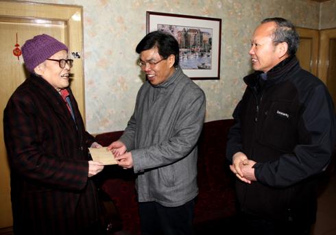 最是情深岁寒时,群众冷暖挂心间。1月20日,在2011年春节即将来临之际,地球化学研究所胡瑞忠所长、李世杰书记、王世杰副所长、冯新斌所长助理、工会主席钟宏和党办、人事处、离退休办的同志一道冒着风雪,前往生活困难党员、老党员、离休老干部及部分老干部遗孀家中进行了走访慰问,为他们送上了党的温暖和关怀。