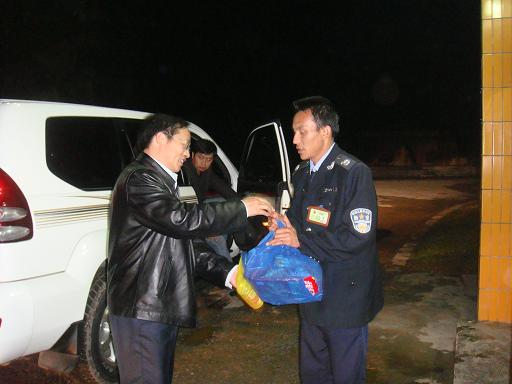 2月2日晚7点30分,在举国欢度虎年除夕夜之时,版纳园党委书记、副主任、工会主席李宏伟率党政办公室、科普旅游部、后勤服务中心等相关部门负责人看望了除夕夜在科研中心、大水池、迁地保护区、热带雨林民族文化博物馆、东门、西门、吊桥、勐仑住宅小区、葫芦岛电站等部门坚守岗位的值班人员,向他们致于节日慰侯,祝他们兔年春节愉快!
