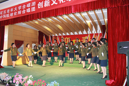 “五月,是岁月的红装;五月,是鲜花的海洋;让我们集合在五星红旗下,为祖国的强盛放声歌唱!”喜迎党的十八大召开,5月9日下午,伴随着欢歌笑语,贵州省军区老年大学与地球化学所的创新文化联谊会在地化所工会大厅隆重举行。省军区老年大学合唱团与中科院地化所合唱团共同奉献了精彩的表演。地球化学所党委书记、副所长李世杰代表全所对省军区老年大学合唱团表示热烈欢迎。观风台社区相关领导参加了本次联谊活动。