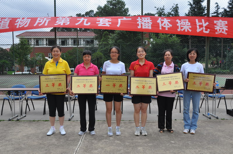 通过各代表队激烈的角逐,经评委统一打分评定,中国西南野生生物种质资源库代表队获得一等奖;植物园和资源植物与生物技术所级重点实验室和机关代表队获得二等奖;中国科学院生物多样性与生物地理学重点实验室代表队、昆植园林公司代表队、植物化学与西部植物资源持续利用国家重点实验室代表队获得三等奖。所属6个部门的335名职工、学生参加了本次比赛活动。希望通过此次比赛促进昆明植物所全民健身活动的进一步深入开展,进而使第九套广播体操成为该所常态化的“工间操”。