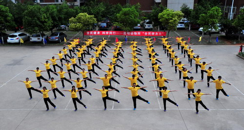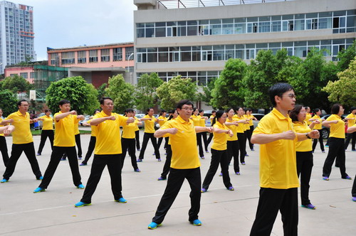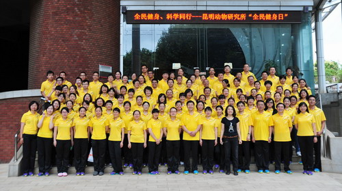 7月4日,雨后的清晨,凉风送爽;昆明动物所并不宽阔的活动场地内,气氛热烈,人人神采熠熠。为进一步贯彻落实科学院的“全民健身日”活动,昆明动物所工会隆重举行以“全民健身,科学同行”为主题的第九套广播体操比赛和展示活动。共有120余人职工和研究生代表参与了此次活动。