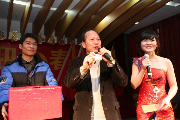节目进行过程中还穿插了三轮抽奖活动,设置了一、二等奖共40个奖项。每一轮的抽奖活动,都令现场高潮迭起。整场联欢会伴随着《难忘今宵》的歌声在喜庆氛围中落下帷幕。(张雅民供稿/张肖华摄影)