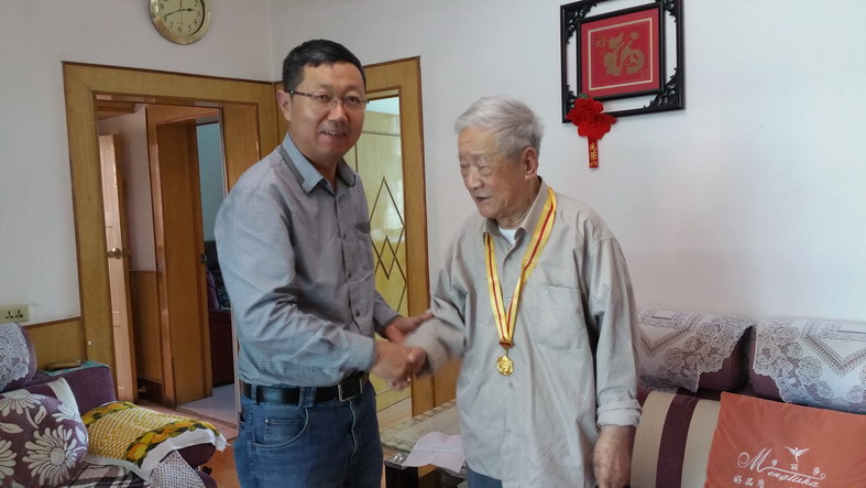 在中国人民抗日战争暨世界反法西斯战争胜利70周年之际,为缅怀历史,表达对革命老前辈的敬仰之情,9月1日下午,中国科学院地球化学研究所党委书记冯新斌在党办主任黄万才、组织人事处处长张欢和离退休办负责人唐贤姝等的陪同下,看望了地化所在抗战时期参加革命工作的罗绪先老同志,同时把慰问金、纪念章和研究所致中国人民抗日战争暨世界反法西斯战争胜利70周年的慰问信,送到了罗老干部的手中,并向他致以崇高的敬意和亲切的问候。 在走访慰问中,冯新斌与罗老干部亲切交谈,一起重温那段光辉历史,详细了解老人的日常生活起居、身体状况,对他们在战争年代积极投身革命,不怕流血牺牲的大无畏革命精神表示了崇高的敬意。并希望他一如既往地关心和支持研究所的各项工作,继续发扬优良传统,发挥独特作用,作出新的贡献。祝他们健康长寿、阖家幸福!罗老干部对党中央及所领导的关怀表示了衷心的感谢。