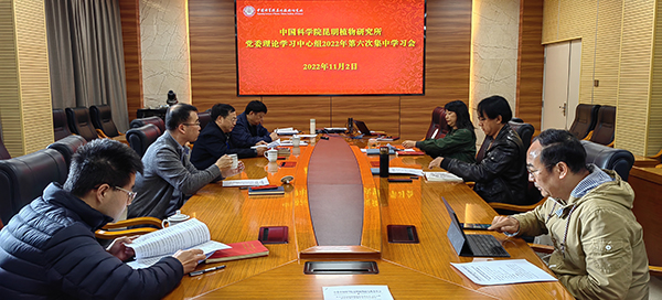 11月2日,中国科学院昆明植物研究所党委理论学习中心组举行2022年第六次集中学习会,专题传达学习党的二十大精神,党委理论学习中心组成员参加。学习会由党委书记、副所长李宏伟主持。