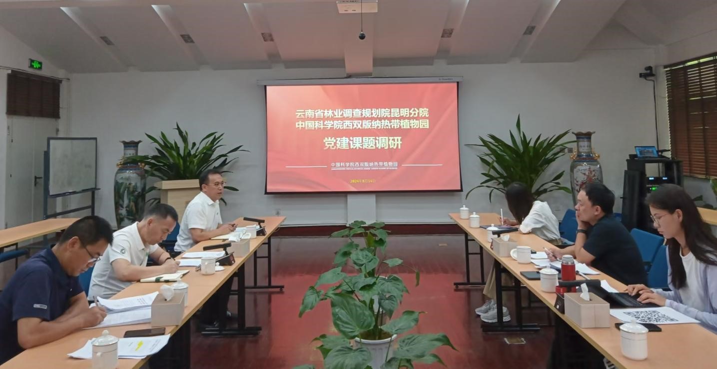 8月14日,云南省林业调查规划院昆明分院(以下简称“省林规院”)来中国科学院西双版纳热带植物园(以下简称“版纳植物园”)开展党建课题《科研院所完善党的领导体制机制研究》调研。省林规院纪委书记张如松、版纳植物园纪委书记黎廷宇出席会议。版纳植物园党委委员、党办主任李德飞主持会议。