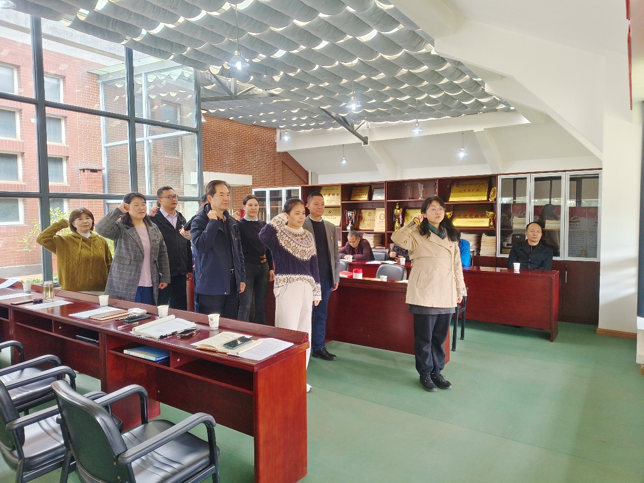 会上,为进一步推进党员队伍建设、强化党性修养,支委宣读接收成为预备党员同志的审批意见,特别为11月份入党的正式党员同志过“政治生日”,全体党员同志面对党旗庄严宣誓,重温入党誓词,牢记入党初心。