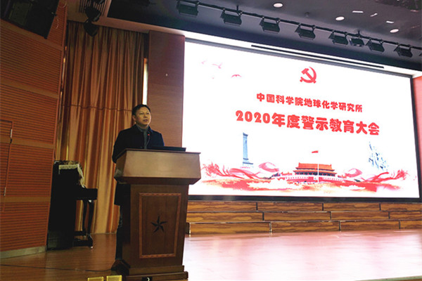 12月29日下午,地化所在一号楼学术报告厅召开2020年度全所警示教育大会,所长、党委书记冯新斌作宣讲,党委副书记、副所长陈敬安主持会议,全所近200名职工参会。