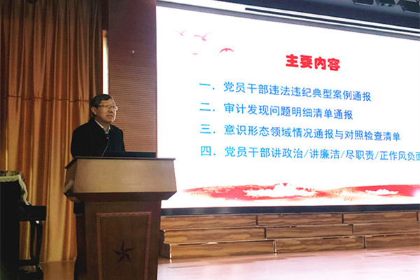 冯新斌的宣讲报告分为4个部分。第一部分通报了关于2018年以来查处的中国科学院党员干部违法违纪典型案例;第二部分通报了中科院条财局下发的审计发现问题明细清单;第三部分通报了意识形态领域情况与“20个有没有”对照检查清单;第四部分解读了地化所党员干部“讲政治、讲廉洁、尽职责、正作风”负面清单(40条),着重对科研诚信建设、兼职取酬等方面提出要求。