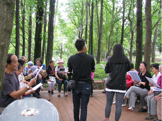 下午,离退休老同志们来到昆明植物园游览,游览之际,“老年之家”组织的兴趣小组——歌咏小组放声歌唱,愉快的歌声表达了大家欢快的心情。