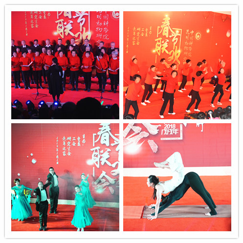 联欢会上,21个节目轮番登场、精彩纷呈。《尘缘》、《父亲写的散文诗》、《远方》、《彩虹》、《我爱你中国》、《国家》、《乌苏里船歌》、《山的壮想》等歌曲宛转悠扬,紧紧地抓住了现场观众的心,深情的歌声,灵动的歌词,抒发了对祖国、对生活的无限热爱,唱出了迈向新春的壮志豪情和对美好明天的憧憬与向往。《今天开始我们》、《舞韵瑜伽》、《健身舞》、《藏族舞》、《武断入侵》、《华尔兹》、《魅力身影》、《花恋》、《祝酒歌》、《千年风雅》等舞蹈精彩登场,从古风古韵到异趣风情再到当下流行,每一种舞蹈都被演员们展现得淋漓尽致,勾勒出一幅幅美轮美奂的精致画卷,使观众在肢体动态中感受舞蹈艺术的无穷魅力。小品《非诚勿扰》、《穿越》以诙谐幽默的语言、富于深意的故事赢得了在场观众的阵阵掌声。古筝独奏《雨碎江南》清灵、温婉,让人耳目一新。紫光手影舞《新象》新颖独特,在紫光灯的照射下,演员们通过手的组合和形体相辉映的方式,变幻出鸽子、大树、表情、文字等,将演员心中对世界和平、新年新气象的美好愿景诠释得生动唯美,把整场联欢会推向了高潮。最后,春节联欢会在一曲《共筑中国梦》的歌舞朗诵节目中圆满落下了帷幕,现场掌声经久不息,欢快祥和的节日氛围萦绕着整个联欢会现场。