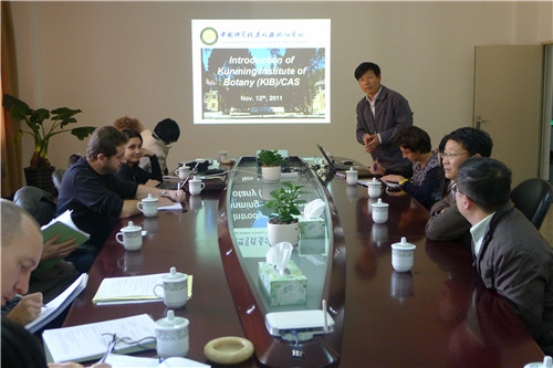 11月22日,法国生物多样性青年研究人员代表团一行七人在法国驻华大使馆科技合作主管刘辉博士的陪同下访问了中国科学院昆明植物研究所。所长李德铢向代表团的到访表示欢迎,并就研究所的概况向代表团一行作了简要介绍。