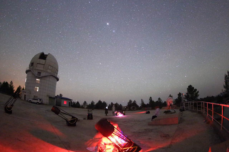 3月21日至22日,“梅西耶马拉松2015交流会”在中国科学院云南天文台丽江观测站举行,来自海峡两岸的天文爱好者30余人参加了此次交流会。这是我国大陆地区首次举办此类活动,台北天文协会的资深天文爱好者在会上对这一赛事进行了详细介绍,并分享了以往组织和参赛的经验。傍晚,众多天文爱好者齐聚丽江高美古,开始整夜的目视观测,凭借顽强毅力和所掌握的天文知识,在夜空搜寻逐个升起的“梅西耶天体”。其中,来自台北的刘志安“一个不漏”的完成了所有观测,成为“梅西耶马拉松”赛事史上第88次完成的选手。 所谓“梅西耶马拉松”,是指有组织的天文爱好者在一整夜时间内尽可能多地寻找到梅西耶星云星团表110个天体(简称梅西耶天体)的比赛活动。这项活动始于上世纪70年代,由北美一批业余天文学家发起。由于梅西耶天体在天空中分布不均匀,所以每年3月末、四月初当太阳运行到没有梅西耶天体的区域时,在北纬20度至30度的地方有望看到所有110个梅西耶天体。此项活动不仅对举办时间、地点要求苛刻,还规定选手不得借助任何自动寻星仪器,不可使用模拟星图软件等电子化工具,仅依靠普通望远镜和印刷版星图进行目标搜索和确认,非常考验选手的体力和对星空的认识水平。到2014年底为止,全世界仅有87名选手完成全部目标的观测。云南天文台丽江天文观测站坐落于铁甲山巅高美古地区,海拔约3200米,具备低纬度、高海拔的双重地理环境优势,大气透明度高,天光背景暗。它得天独厚的天文观测条件是作为“梅西耶马拉松”举办地的一个重要的因素。 本次交流会由《中国国家天文》杂志社、台北市天文协会、云南省天文爱好者协会、云南省天文学会联合举办,并得到中国科学院国家天文台和云南天文台的重视和支持,有关领导应邀出席了交流会并参加观测。本活动的成功举办加强了两岸天文爱好者的交流,促进并推动了大陆地区梅西耶马拉松活动的普及,同时提高了天文爱好者对星空的基本认知技能和视野开拓,对公众参与天文科普的积极性起到推动作用。    |
