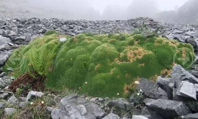 俗话说“团结就是力量”,众所周知,动物界蚂蚁、蜜蜂等社会性昆虫营集群生活,可以把微不足道的个体力量汇聚成巨大的集体力量。在高山冰缘带,也有一种植物通过无数的小枝多年辐射式生长,最终形成一个“庞然大物”,这就是石竹科无心菜属植物澜沧雪灵芝(Arenaria lancangensis)。这种植物紧贴地面或岩石生长,无数的小枝簇生在一起,像是在坚硬的岩石上铺上了一层柔软的垫子,因此这种植物也被形象的称之为“垫状植物”。
