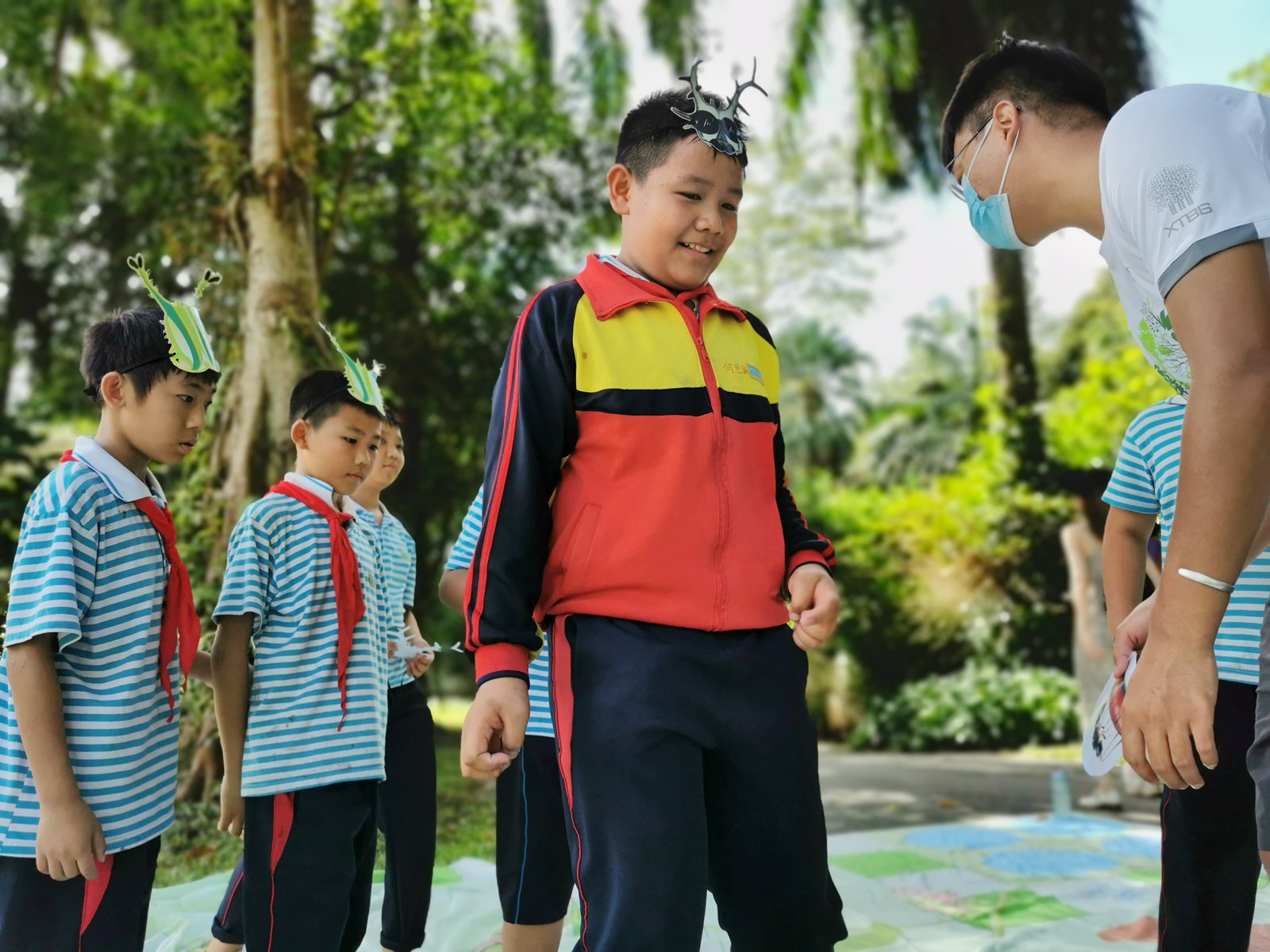 小学生们参加毛毛虫大作战游戏