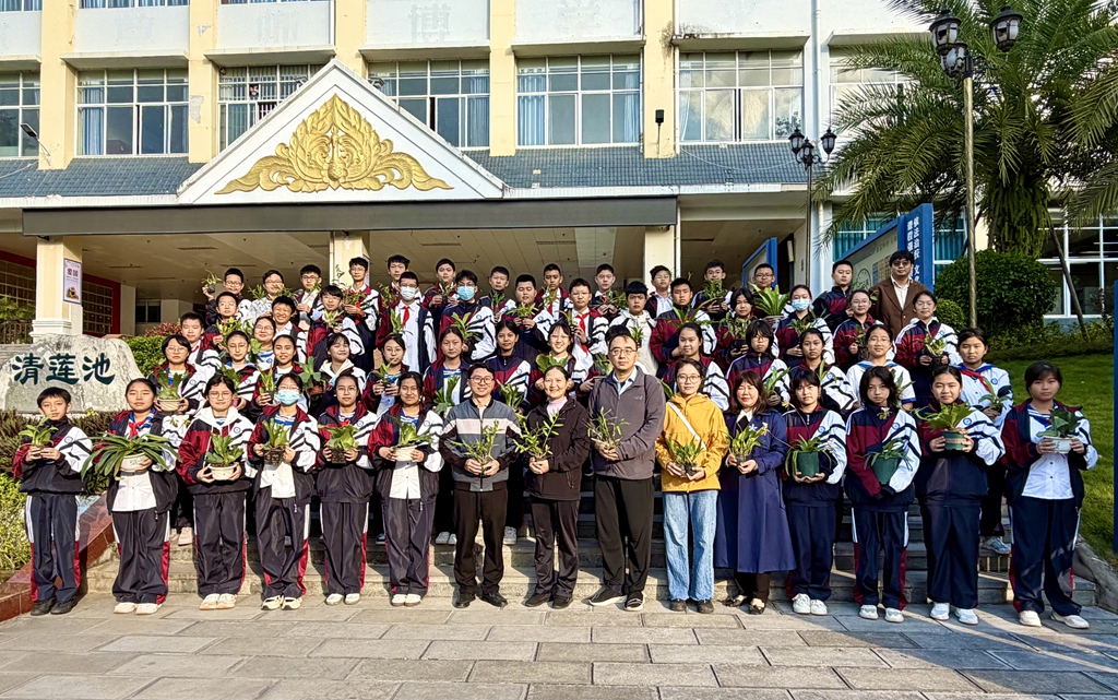11月25日—30日,版纳植物园科普团队相继走进西双版纳州第一中学和勐满中学,捐赠并带领师生种植包括版纳青梅、征镒木、贡山波罗蜜在内的15科18属462株极小种群野生植物苗木,带动广大青少年对生物多样性保护的关注和参与,共同守护扎根校园的这些珍稀苗木。