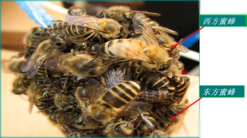 东方蜜蜂和西方蜜蜂发动攻击后对胡蜂进行结团