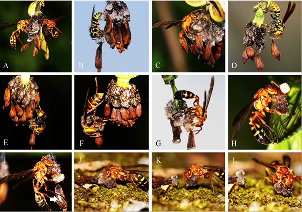 最近,研究团队以胡蜂扩散的大百部(Stemona tuberosa)为研究对象,通过野外调查、化学分析、种子传播实验等探索了种子传播者与传播体在空中的权衡。结果表明:1)胡蜂与传播体质量存在当地适应性,二者的质量可能随纬度升高而降低;2)胡蜂对种子的扩散效率与传播体质量负相关;3)交换实验表明同种胡蜂扩散小传播体效率更高。当地胡蜂可识别并搬运外来传播体暗示了胡蜂嗅觉识别的稳定性。胡蜂与大百部传播体的相互作用为我们提供了一个衡量动物对其互惠植物进化功能性状选择偏好的理想体系。该研究成果以“Do dispersers shape diaspore mass in vespicochory?”为题发表于生态学期刊Ecology上,硕士研究生李英为第一作者,陈高研究员为通讯作者。