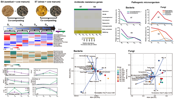 文章以Characteristics of bacterial and fungal communities and their impact during cow manure and agroforestry biowaste co-composting为题在国际期刊Journal of Environmental Management上发表。何燕为论文第一作者,刘栋、于富强为论文共同通讯作者。