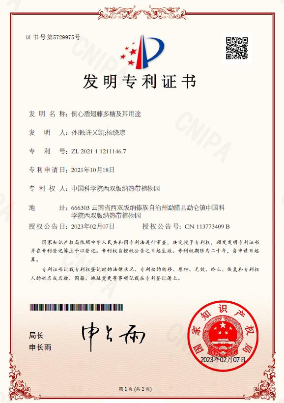 相关研究以“Aspidopterys obcordata vine inulin fructan affects urolithiasis by modifying calcium oxalate crystallization”为题发表于国际学术期刊Carbohydrate Polymers上,博士后研究人员孙朋为该文第一作者,许又凯研究员为通讯作者;部分研究成果已取得专利授权。该研究得到中国科学院合作局、中国科学院药物创新研究院、版纳植物园一三五项目资助。