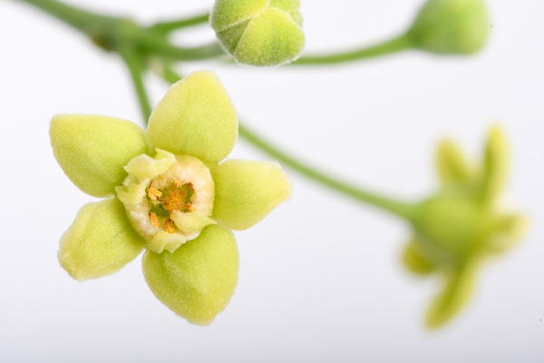 土沉香在春夏开花,花黄绿色,味芳香,萼筒浅钟状5裂,花瓣呈鳞片状着生于花萼筒喉部,多朵花组成伞形花序。土沉香在昆明植物园开花,不仅标志着土沉香迁地保护初步成功,也可使公众近距离看到这种珍稀濒危物种开花结果。