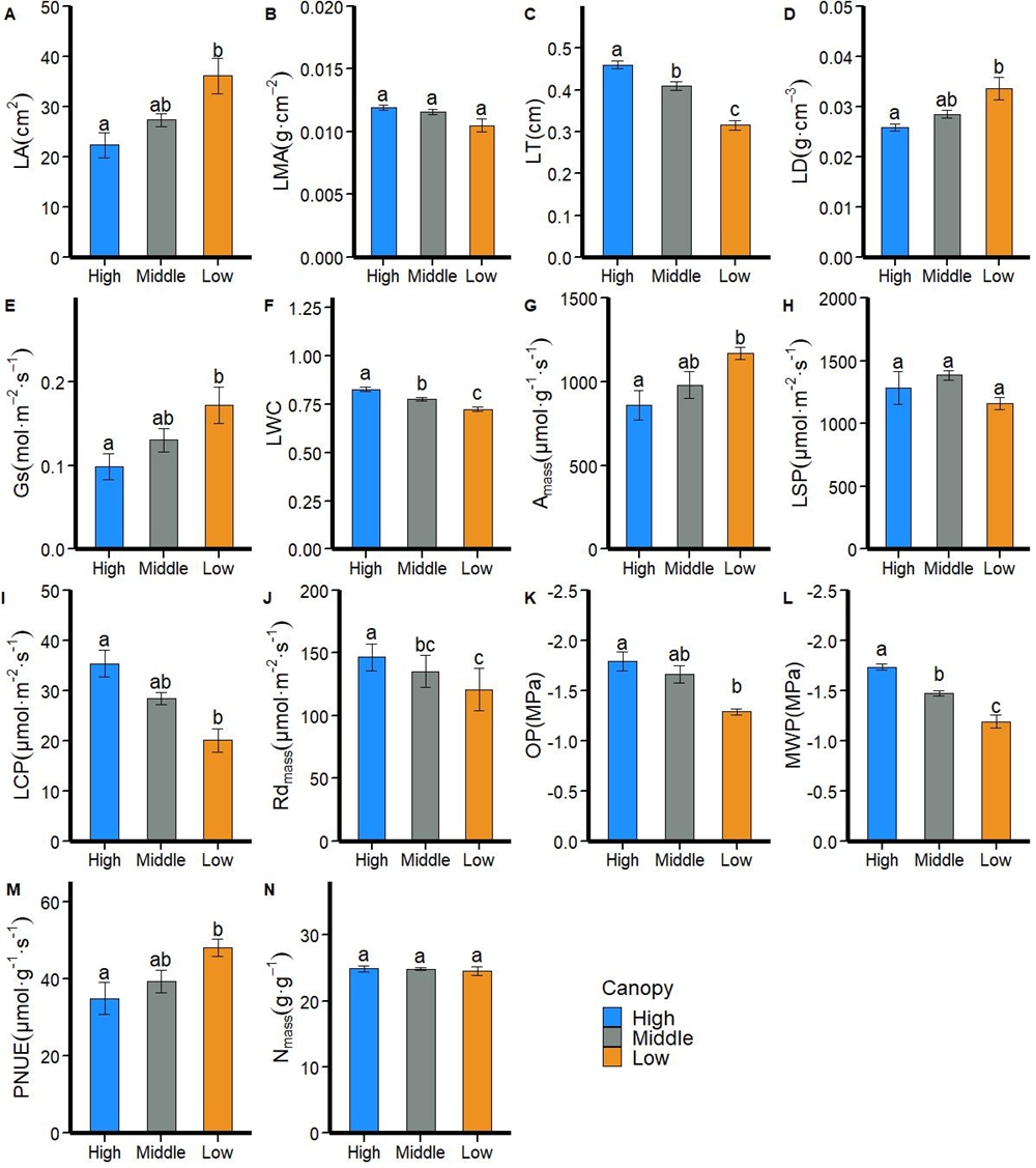望天树叶功能性状沿不同树高垂直梯度的变异