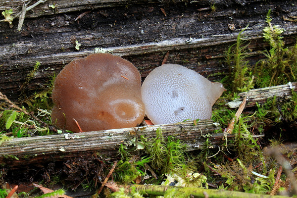 刺银耳属以其齿状子实层和胶质子实体为特征,全球分布广泛,常见于温带至热带森林的腐木上。尽管该属物种数量稀少,全球仅报道22种,分布于亚洲、欧洲、大洋洲、北美洲和南美洲的森林生态系统,尤其在山区更为常见,如:中华胶质刺银耳(Pseudohydnum sinogelatinosum)(图3)和喜马拉雅刺银耳(Pseudohydnum himalayanum)(图4)等。