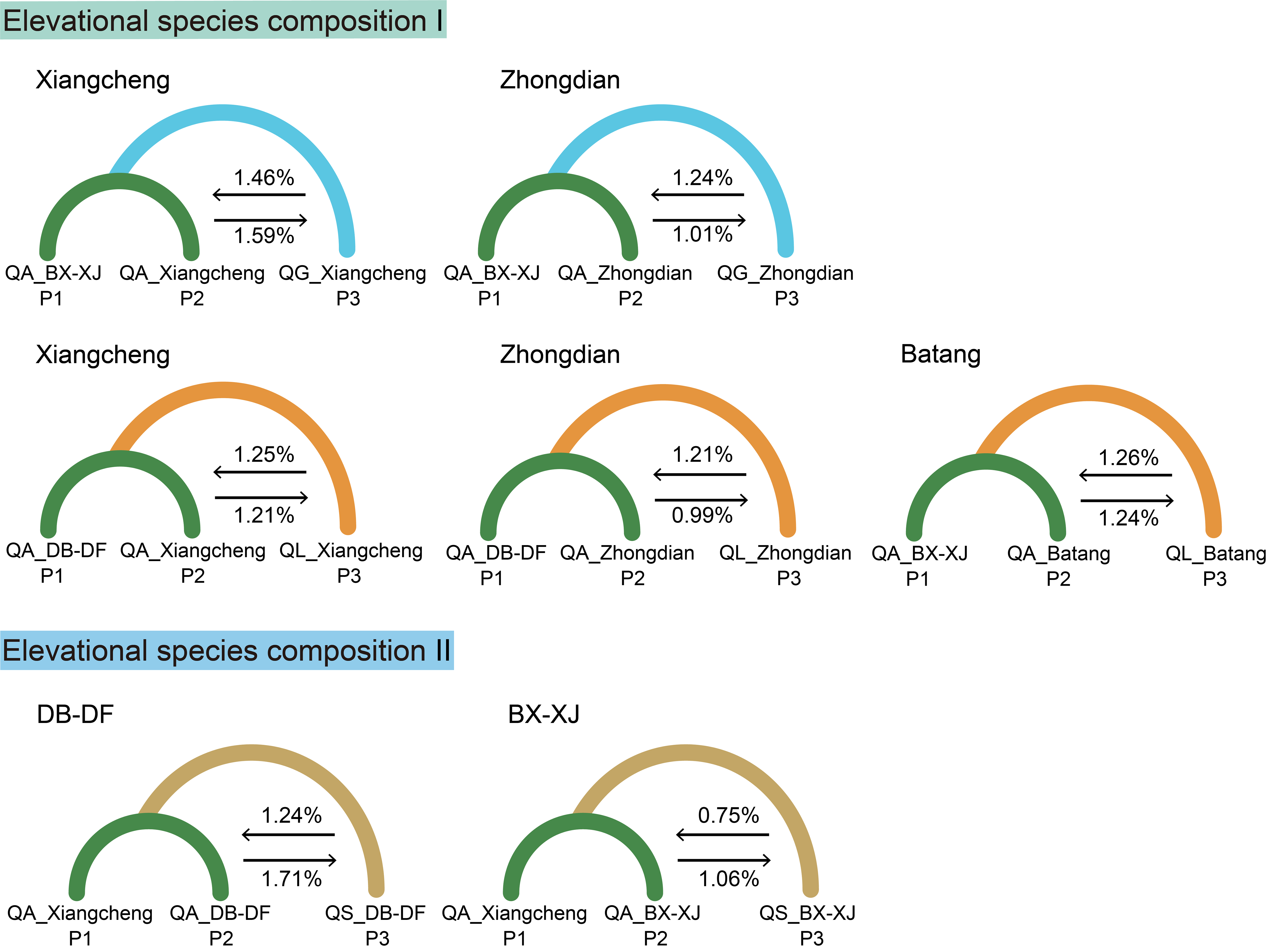 图2 川滇高山栎与其同域近缘种的基因流检测