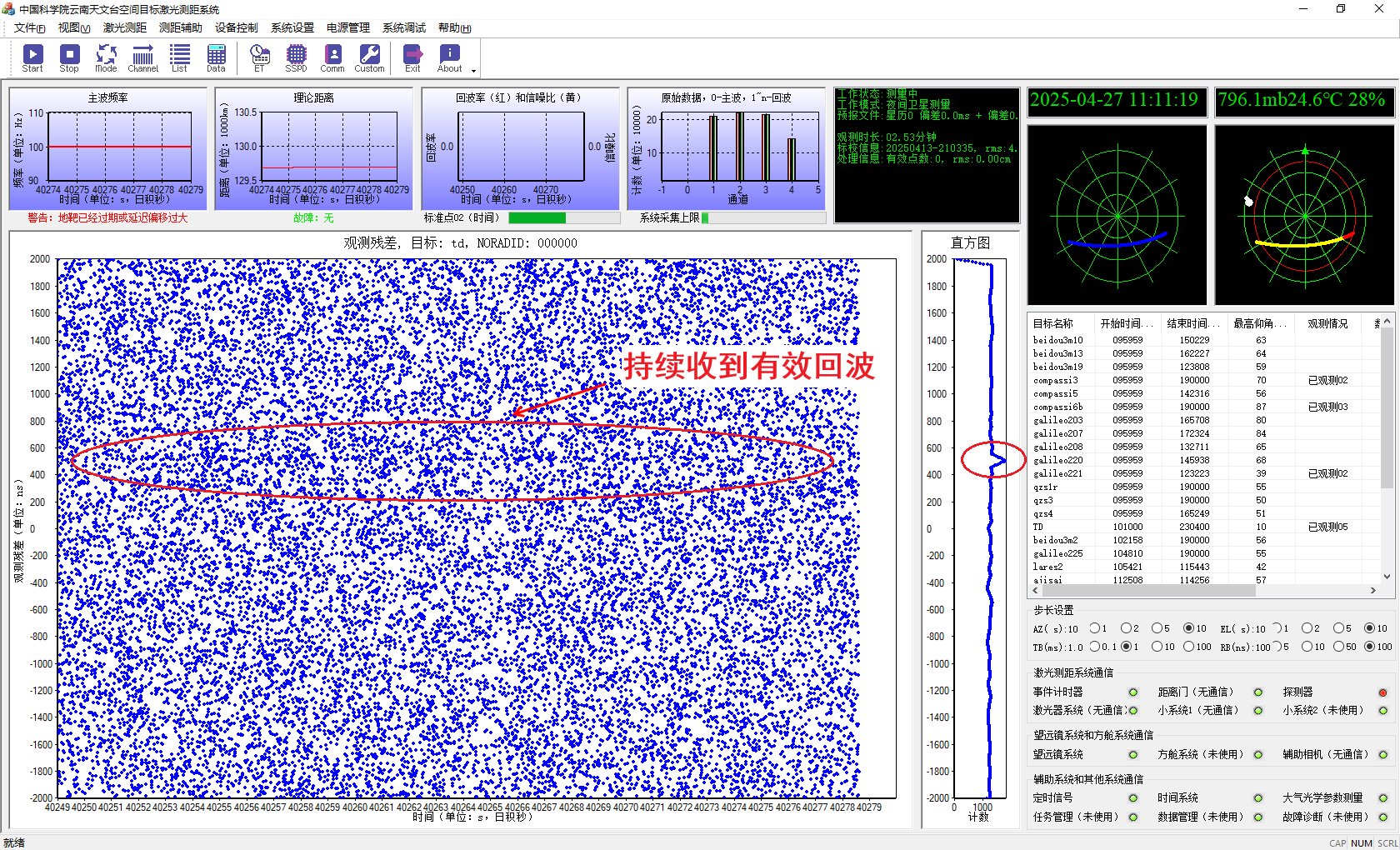 天都一号卫星白天激光测距实测截屏