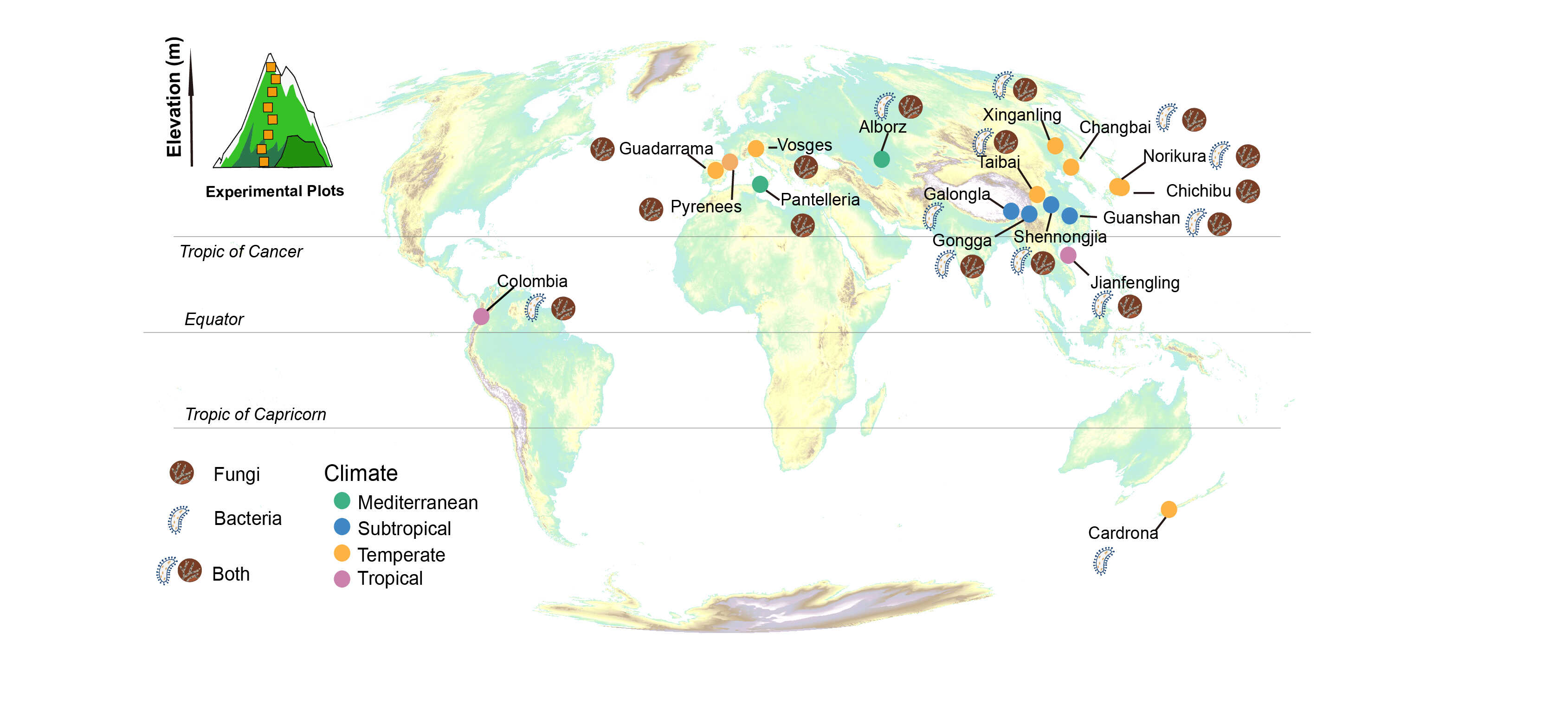 该研究以Janzen's hypothesis revisited for soil microorganisms: bacteria align more strongly with its postulates than fungi为题,发表在国际生态学与生物地理学经典期刊Global Ecology and Biogeography上。中国科学院昆明植物研究所孙航院士团队张亚洲副研究员和科罗拉多州立大学J. Aaron Hogan博士为论文第一作者,孙航院士为通讯作者,苏黎世联邦理工Thomas W. Crowther教授、昆明植物研究所宋敏舒工程师和已毕业硕士许诗嘉参与该研究。该研究得到青藏高原二次科考项目、国家自然科学基金、云南省基础研究专项、兴滇人才青年人才项目、云南省彩云博士后计划、中国科学院昆明植物研究所人才引进项目等的支持。
