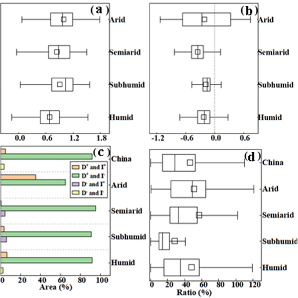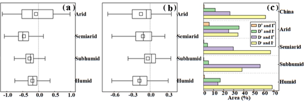 图 2 大气饱和水汽压差对植被生产力影响的直接作用、间接作用及其交互作用