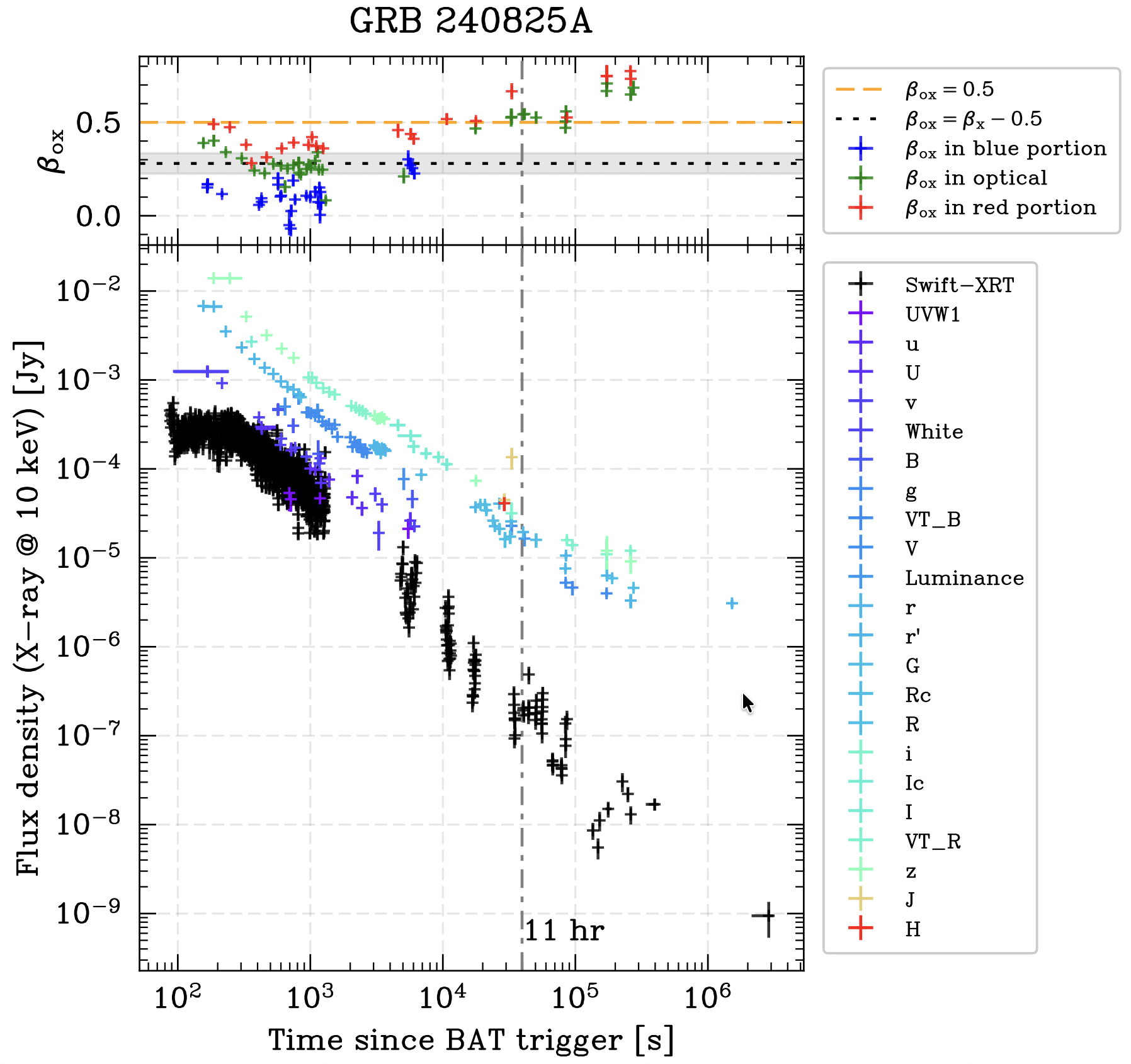 图1:GRB 240825A余辉的多波段光变曲线
